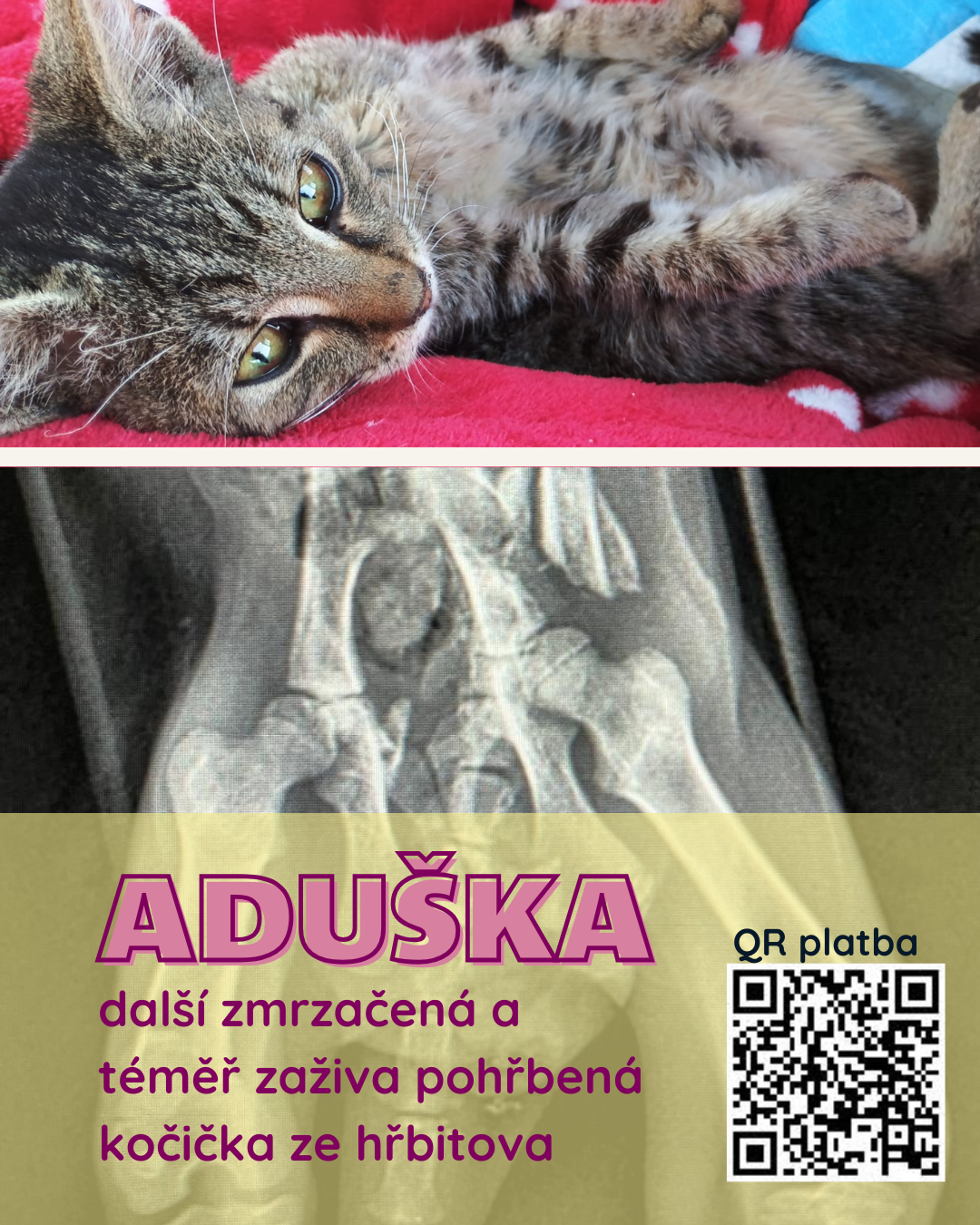 Mazlík je asi pětiměsíční kocourek, nalezený ve Strání u silnice – stejně jako tolik dalších kočiček, které někdo opustil a nechal jejich osud náhodě. Naštěstí se ho ujala hodná nálezkyně, která mu sehnala dočasnou péči u svého známého. My jsme slíbili, že Mazlíkovi pomůžeme najít opravdový domov. Inzerovali jsme ho, nabízeli… zdálo se, že všechno má dobrý směr. Včera se ale všechno zlomilo. Doslova. Nálezkyně nám volala s tím, že má Mazlík problém s packou. Vyšetření ukázalo zlomenou nohu. Pán, u kterého byl kocourek v dočasné péči, však odmítl operaci. Veterinář proto jako jednu z možností zmínil i eutanazii. Zlomená noha u kočky totiž není jen „kulhání“. Bez operace by Mazlíka čekaly silné a trvalé bolesti, špatné nebo žádné srůstání kosti, doživotní kulhání, záněty, postupné poškození dalších končetin a páteře. Bolest by ho připravila o chuť k pohybu, ke hře i k životu. U takto mladého kocourka by šlo o celoživotní utrpení nebo dříve či později o neřešitelný stav. Naštěstí se k nám informace dostala včas. Mazlíka jsme okamžitě nechali převézt do Zlína, kde je nyní hospitalizovaný na veterině. Zítra ho čeká operace zlomené nožky, která mu dá šanci na plnohodnotný, bezbolestný život. Po operaci bude muset být 4–6 týdnů v klidovém režimu, v bezpečí a pod dohledem. Zhruba po čtyřech týdnech ho čeká kontrolní RTG a je možné, že následně i další zákrok – vytažení fixačních drátů z nožky. Jak ke zlomenině došlo, přesně nevíme. U takto mladého kocourka se to ale může stát […]