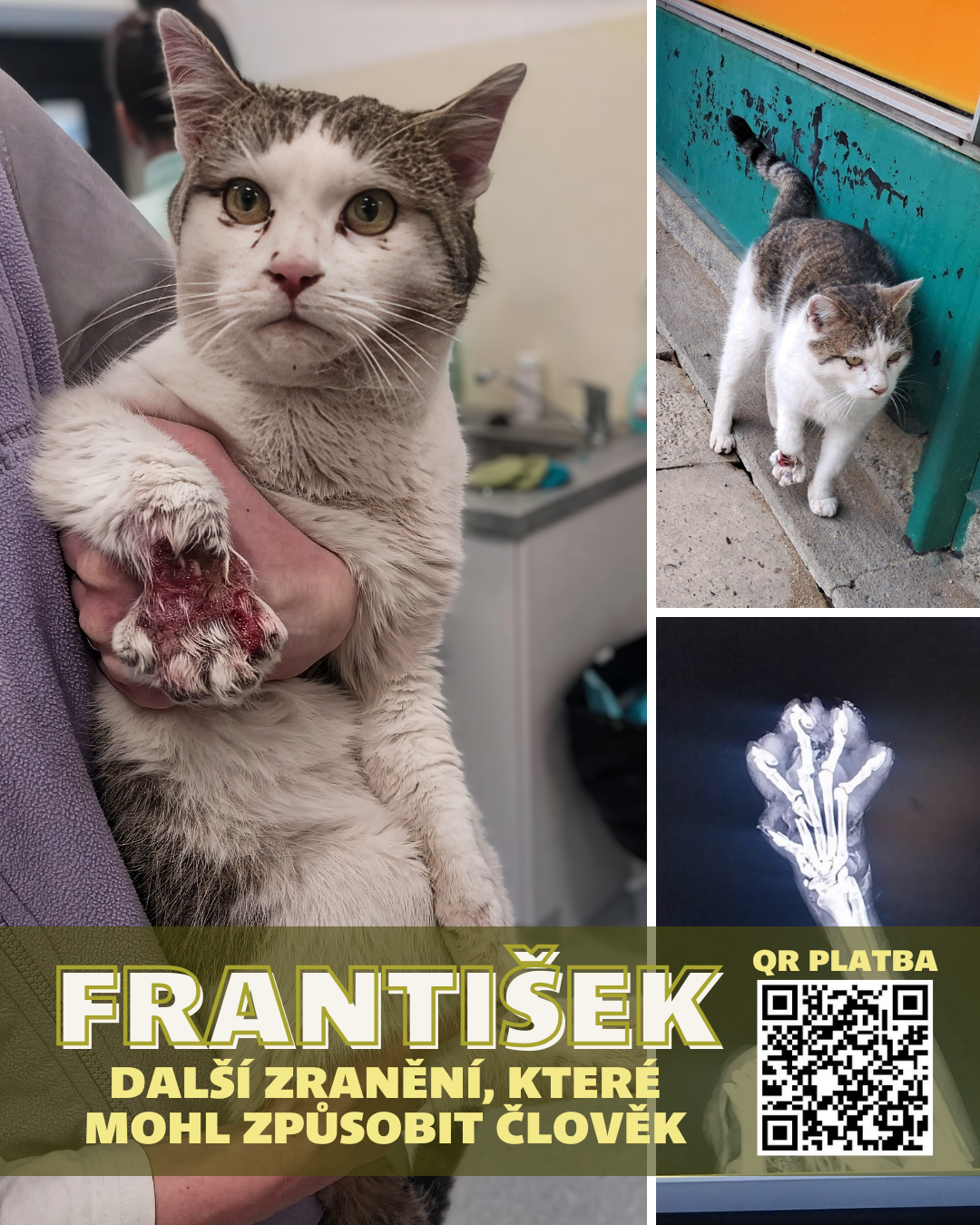 Mazlík je asi pětiměsíční kocourek, nalezený ve Strání u silnice – stejně jako tolik dalších kočiček, které někdo opustil a nechal jejich osud náhodě. Naštěstí se ho ujala hodná nálezkyně, která mu sehnala dočasnou péči u svého známého. My jsme slíbili, že Mazlíkovi pomůžeme najít opravdový domov. Inzerovali jsme ho, nabízeli… zdálo se, že všechno má dobrý směr. Včera se ale všechno zlomilo. Doslova. Nálezkyně nám volala s tím, že má Mazlík problém s packou. Vyšetření ukázalo zlomenou nohu. Pán, u kterého byl kocourek v dočasné péči, však odmítl operaci. Veterinář proto jako jednu z možností zmínil i eutanazii. Zlomená noha u kočky totiž není jen „kulhání“. Bez operace by Mazlíka čekaly silné a trvalé bolesti, špatné nebo žádné srůstání kosti, doživotní kulhání, záněty, postupné poškození dalších končetin a páteře. Bolest by ho připravila o chuť k pohybu, ke hře i k životu. U takto mladého kocourka by šlo o celoživotní utrpení nebo dříve či později o neřešitelný stav. Naštěstí se k nám informace dostala včas. Mazlíka jsme okamžitě nechali převézt do Zlína, kde je nyní hospitalizovaný na veterině. Zítra ho čeká operace zlomené nožky, která mu dá šanci na plnohodnotný, bezbolestný život. Po operaci bude muset být 4–6 týdnů v klidovém režimu, v bezpečí a pod dohledem. Zhruba po čtyřech týdnech ho čeká kontrolní RTG a je možné, že následně i další zákrok – vytažení fixačních drátů z nožky. Jak ke zlomenině došlo, přesně nevíme. U takto mladého kocourka se to ale může stát […]