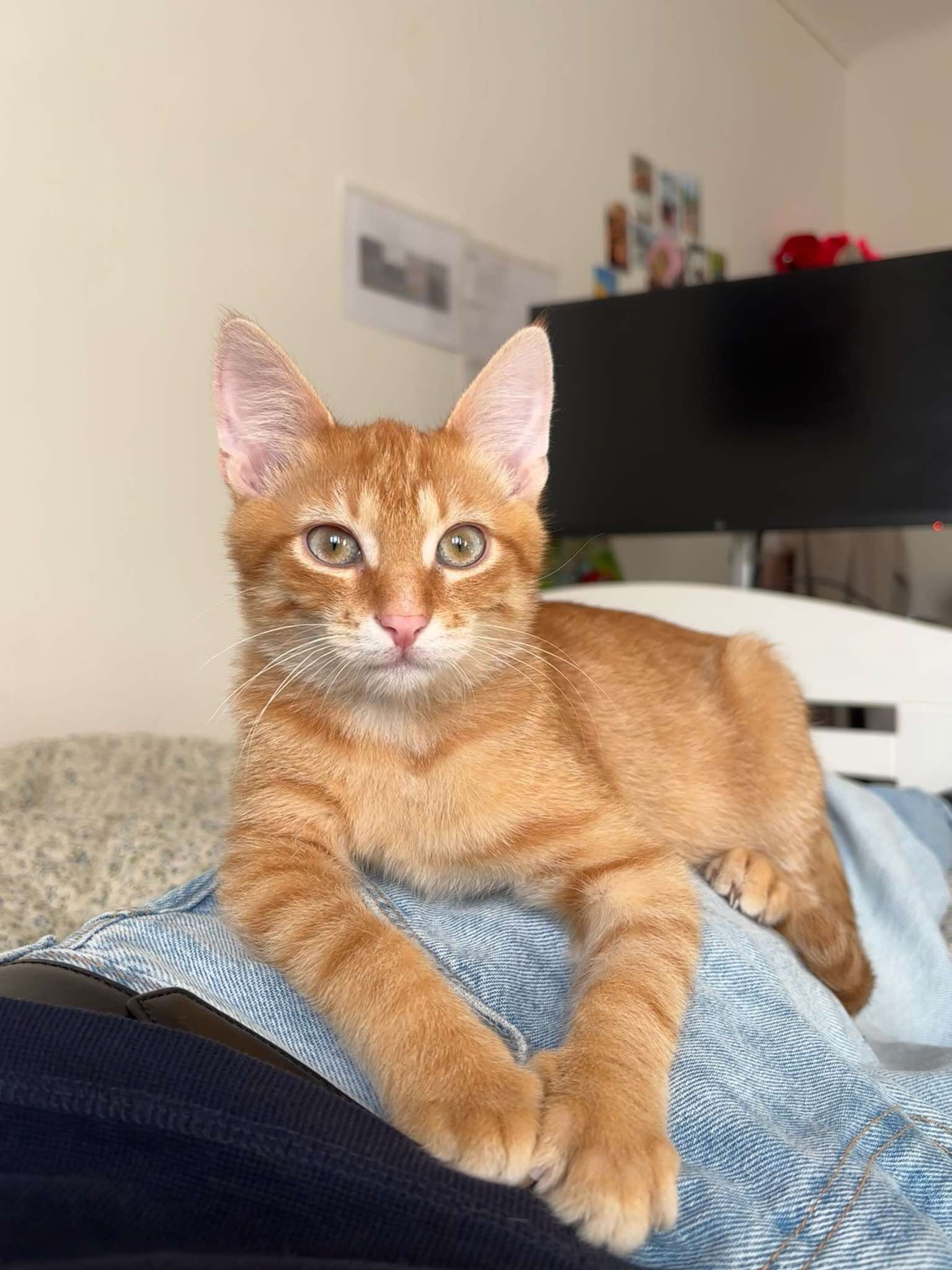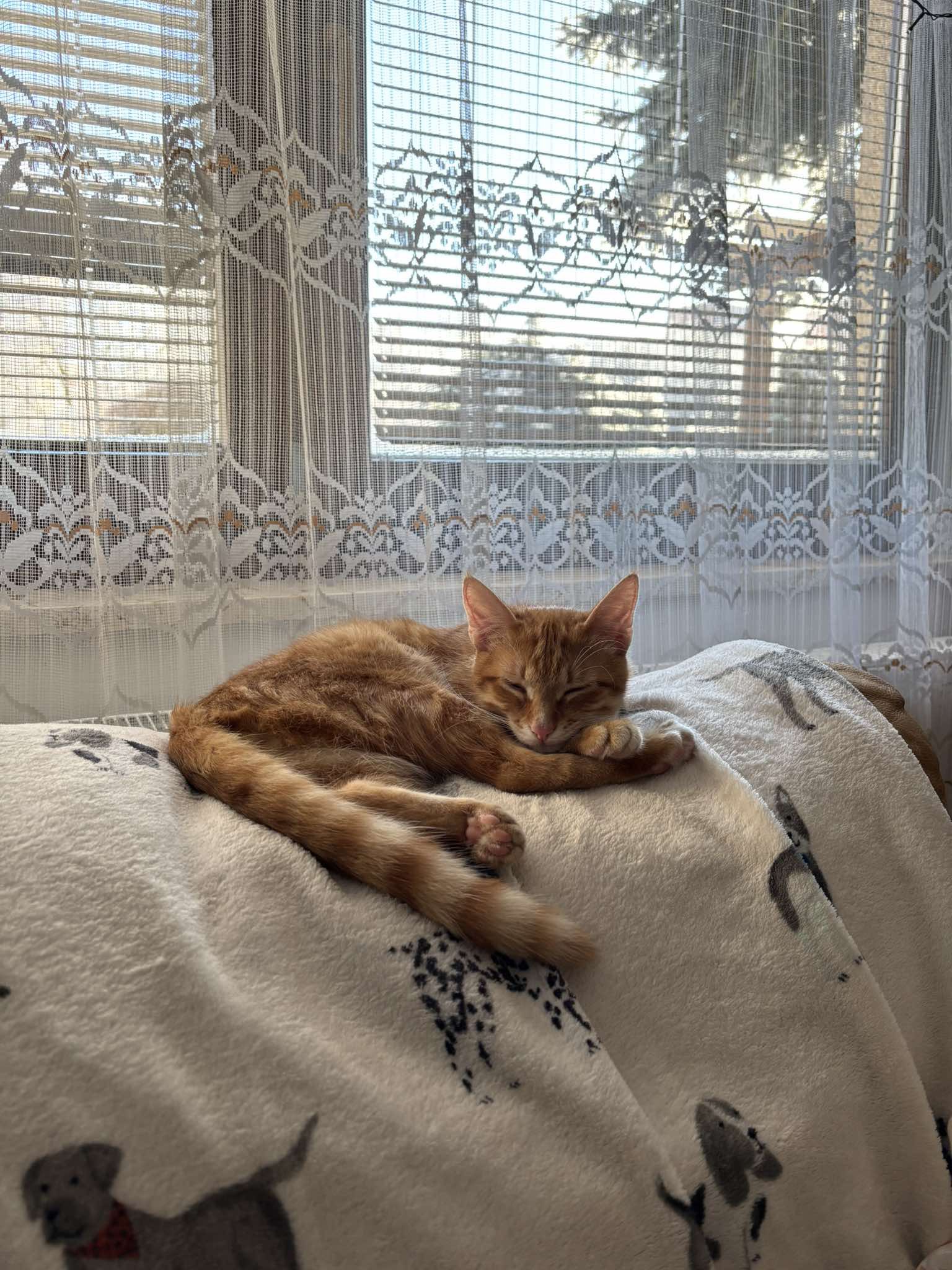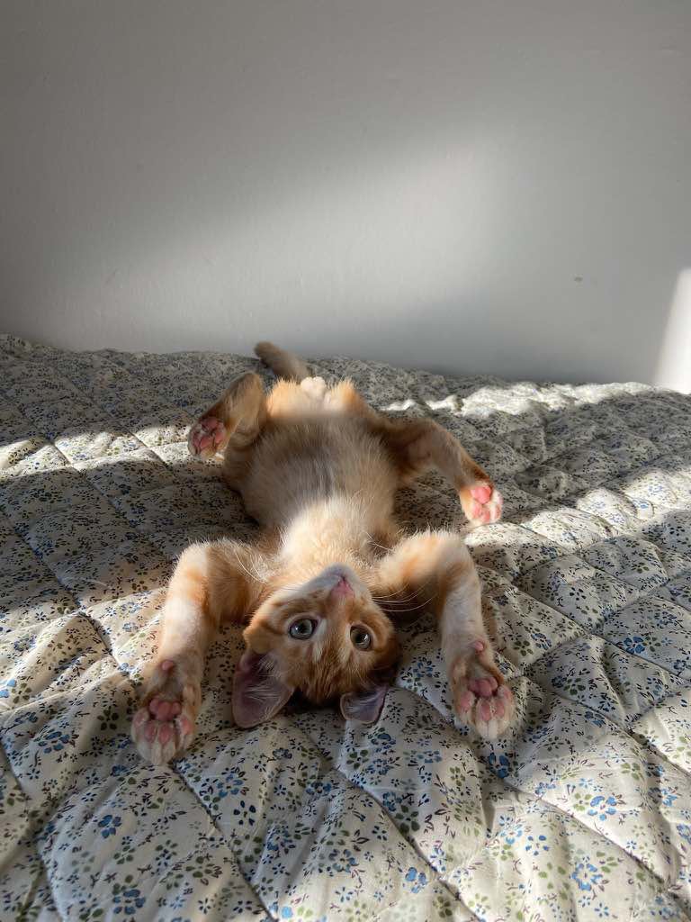 Kocourek, kterého jsme pojmenovali Vendelín, byl od první chvíle velmi mazlivý a to nás velmi překvapilo vzhledem k jeho smutnému příběhu. Venda měl pár trápení po úrazu pánve ale vše skvěle zvládl a nemá už žádné viditelné následky🫶🏻. Je to pořádný neposeda, loví vše co se pohne a snaží se zbaštit každý drobek který potká😋. S Amálkou jsou parťáci v každé lumpárně která je napadne. Každý den nám dělají velkou radost a jsme moc rádi že je máme.❤️🥰“