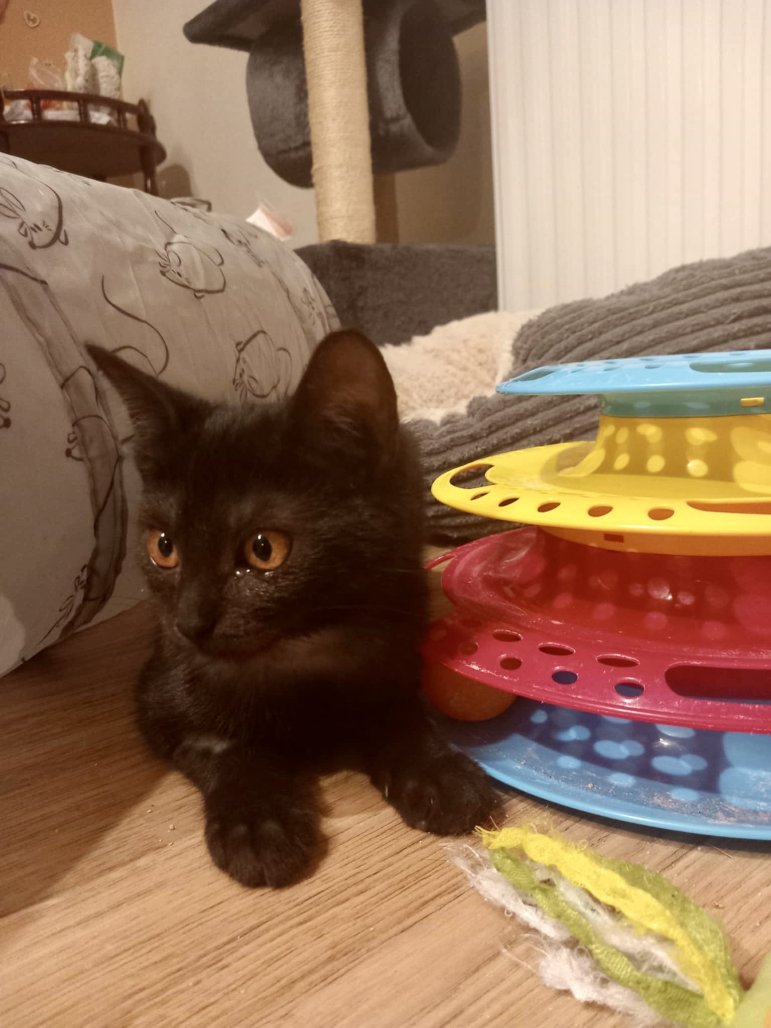 Anynka je 3,5 měsíce stará kočičí princezna s nádherným černým heboučkým kožíškem a krásnýma čokoládově hnědýma očima. 😊