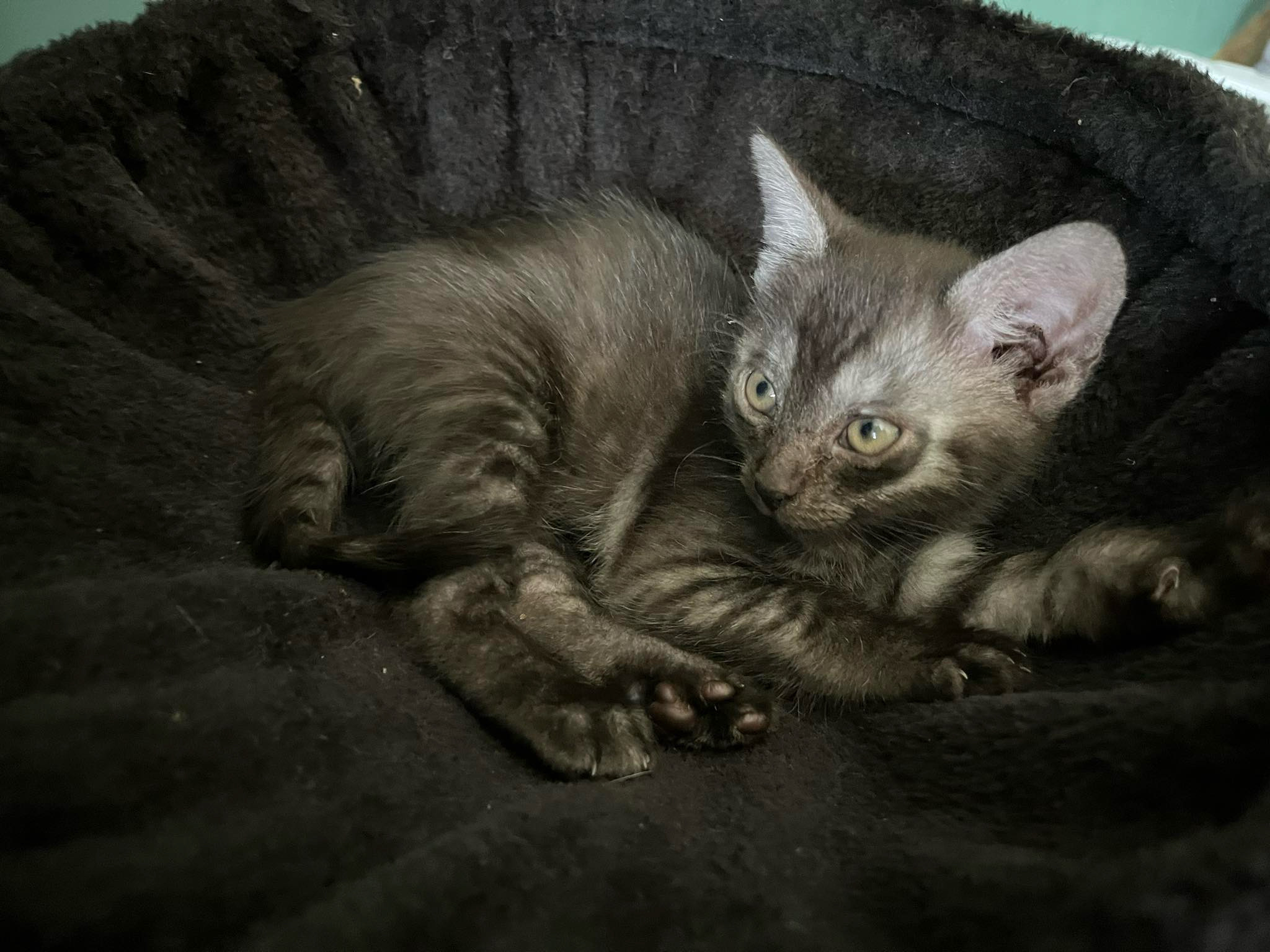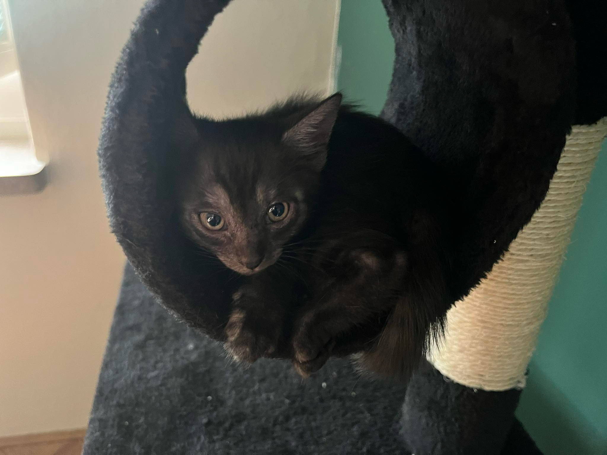 „Jednoho dne jsme viděli krásnou lehce pruhovanou kočičku, ale byla daleko, až 250km. Tak jsme si říkali že určitě najde nějaké jiné skvělé rodiče. ❤️ Nechali jsme to být a za pár týdnů příspěvek, že stále svůj domov nenašla. Tak jsme se rozhodli pro ni jet. Takový malinký uzlíček to byl, že jsme si ji proste museli odvézt. Dali jsme ji jméno Liya, vzniklo cestou domů, kdy jsme viděli nějaký plakát a tohle jsme z toho vymysleli. Cesta byla klidná, spinkala vlastně celou cestu. Doteď cesty zvládá skvěle. ❤️🔥 Máme ještě jednoho kocourka a chvíli jsme se báli, že kámoši nebudou, ale teď neustále spinkají spolu, umývají se vzájemně a milují se. 🐈⬛🐈⬛❤️ Bylo to nejlepší rozhodnutí, je extrémně mazlivá, neustále nám dělá masáže. Miluje krabice a papírové tašky.🐾🐈⬛ Jsme rádi že jsme měli tu možnost pomoci, jak útulku tak i jí. Milujeme ji nadevše doufáme, že tu s námi bude mít pohodový život plný lásky a radosti. 🐾❤️“