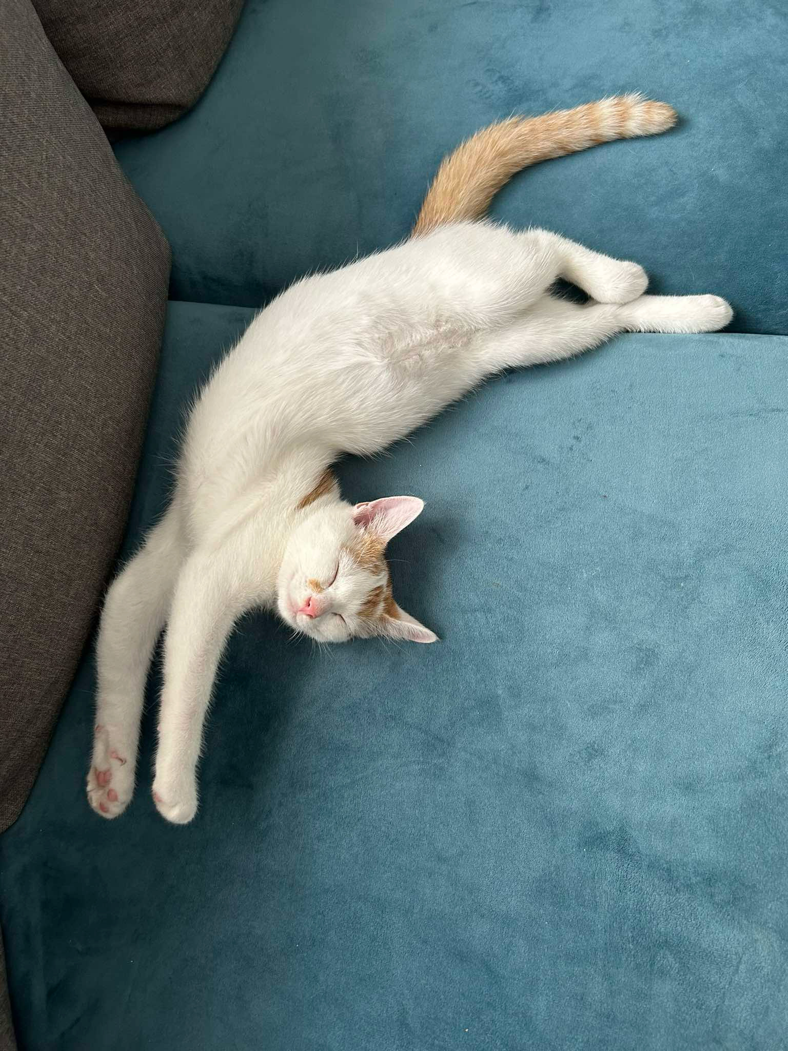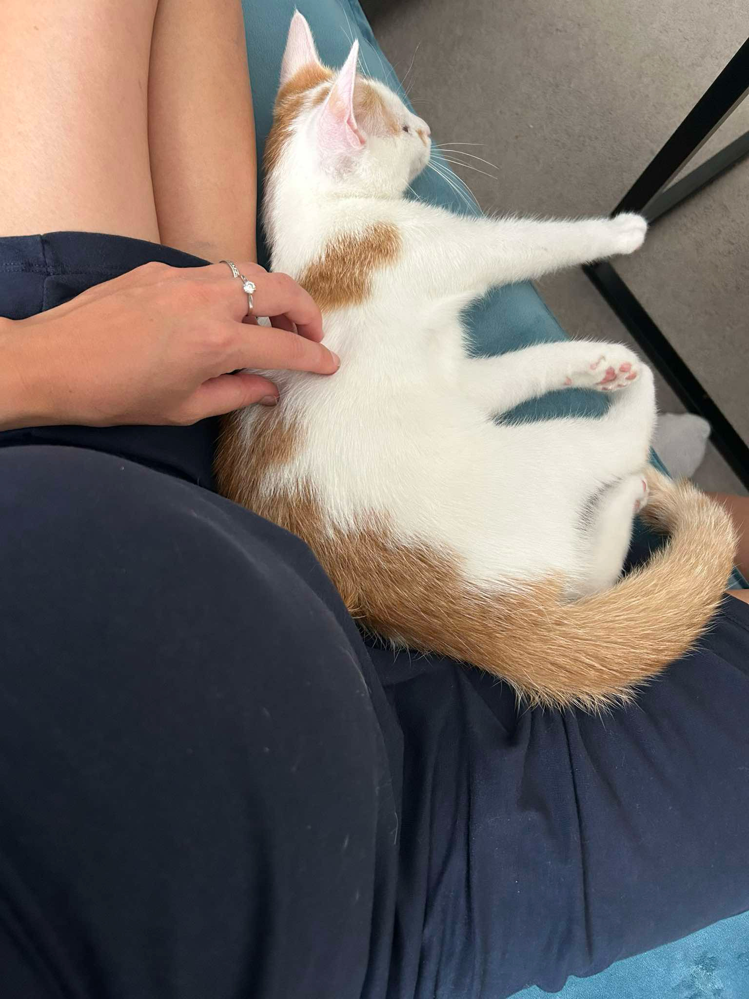 Čipinku máme u sebe už měsíc a půl a je to šílený mazel 😊 Manžel teda říka, že neví ještě koho Čipi miluje víc, jestli mě nebo miminko co ještě nosím pod srdcem. Hodně si lehá na břiško a když vrní, tak na to reaguje miminko. Je to parťák jak na mazlení, tak i hodně na hraní a se synem se často nahání po domě a dělají spolu lumpárny.