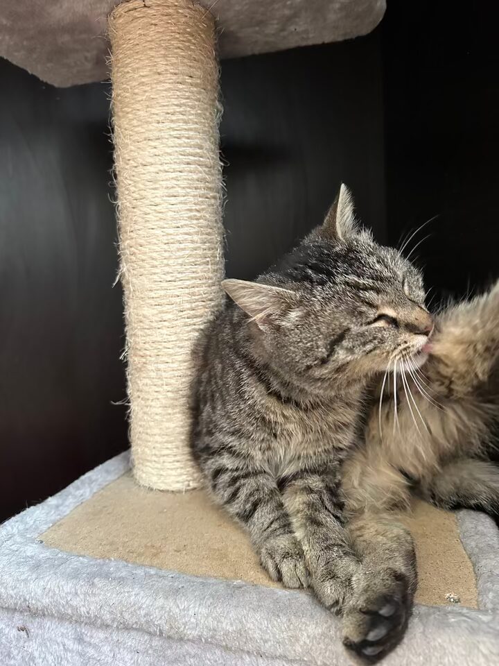 „Hlásím se z nového domova – mám se báječně! Jsem pěkný rošťák, občas trochu zlobím (hlavně v noci, to je ten správný čas na běhání po bytě a lovení neviditelných příšer 🐱‍👤), ale moji lidi mě i tak milují. A já je taky. ❤️