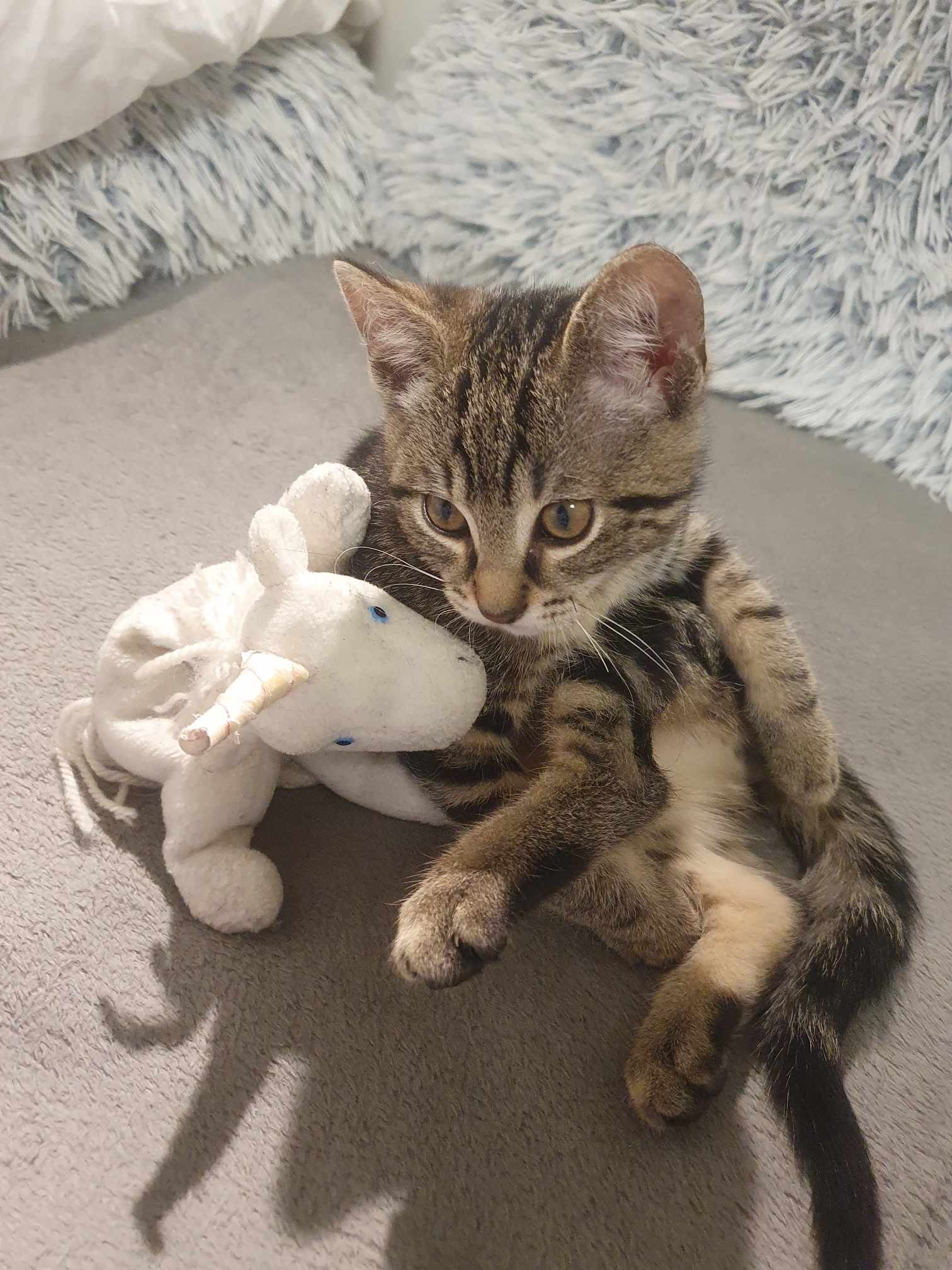 Posílám pár fotek Maxe, pomalu už plánujeme kastraci a tak nějak doufám, že se pak trošku zklidní. Je to totiž pěkný ďábel….v dobrém. Jsou světle chvilky , kdy jsou s Mourkem kámoši, ale spíš ho zlobí a neustále loví. Pořád ho baví taky kousat palce na nohou …. ale uz naštěstí min než před pár týdny, takže chodit naboso se u nás doma moc nevyplácí.