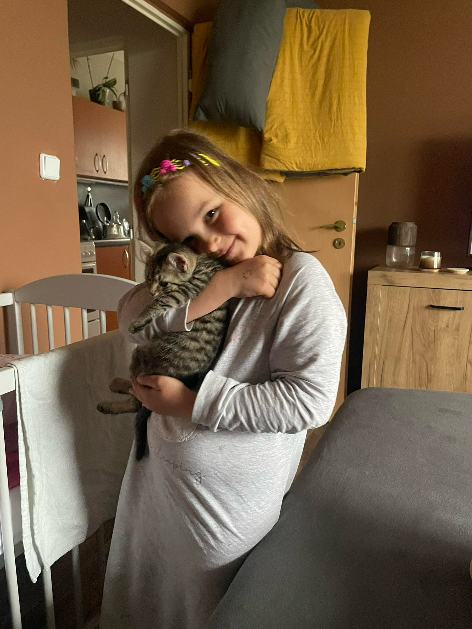 Dostala se do rodiny kde jsou dvě malé děti – Nikolka školní věk, Sárinka 2 měsíce, rodiče Terka a Mirek 🍀 a náš velký chlap Dasty kocour který za chvíli oslaví 9 let ❤️