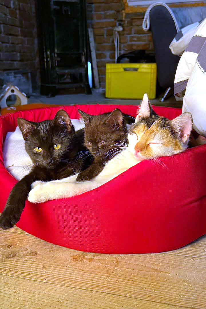 V prosinci jsme si adoptovali 3 úžasná koťátka. Sourozence Káju a Medušku a do party jsme přidali i jejich kamaráda Brůse. V únoru všichni oslavili 6 měsíců.
