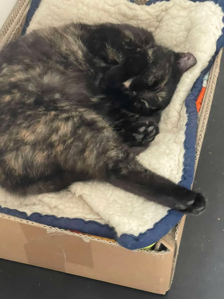 „Jsem Želva ráda spím nebo si hraju sčímkoliv co se hýbe samo a nemusím to rozhýbat já 😁 ačkoli mam radši klid a pomalejši tempo tak mi muj nový paniček vyhovuje. Dal nám tu plno pelíšků a hraček které nám mění aby to nebylo furt to samé dokola. Byla bych radši u klidnějšího typu člověka ale i tu mam lasky plno a časem si určitě zvyknu.“