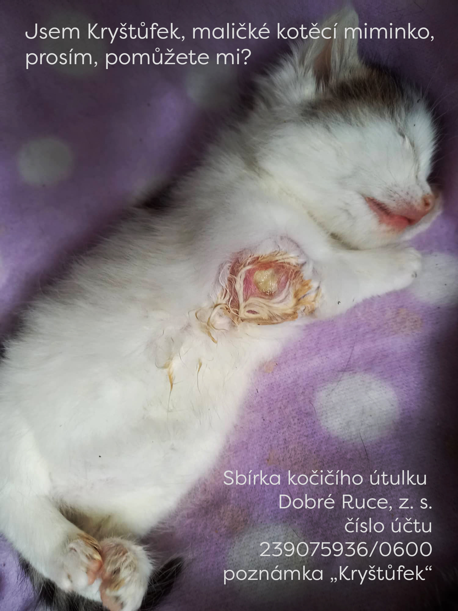 Jsem Kryštůfek, maličké kotěcí miminko, prosím, pomůžete mi?