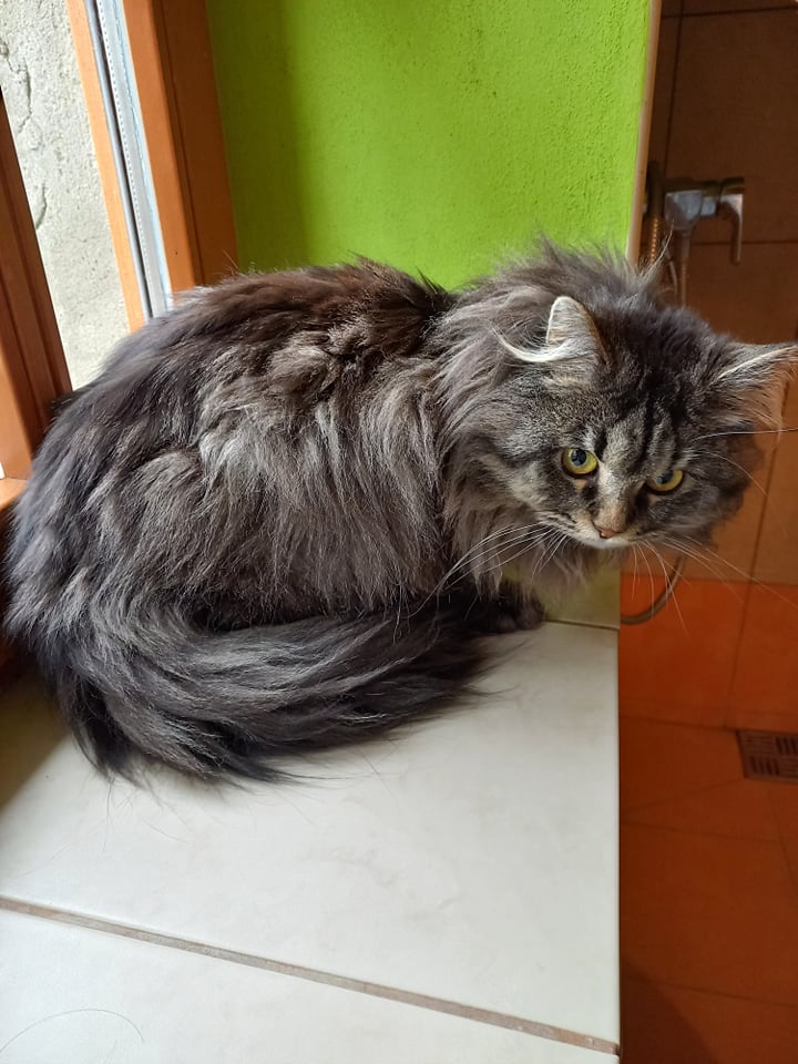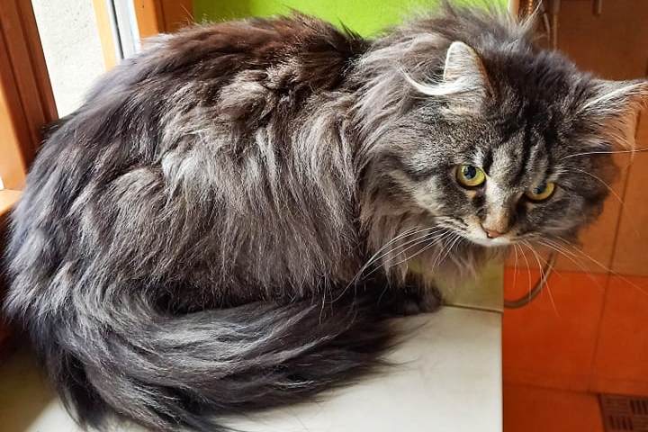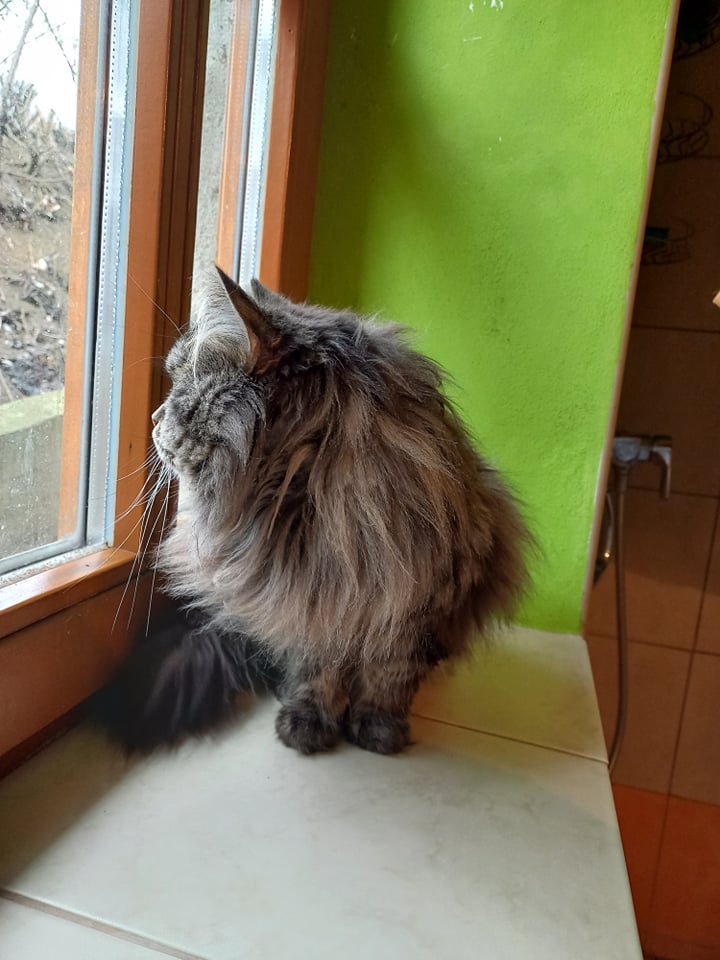 Mám huňatý dlouhosrstý kožíšek a říkají mi, že jsem prý kříženec Mainské mývalí kočky.