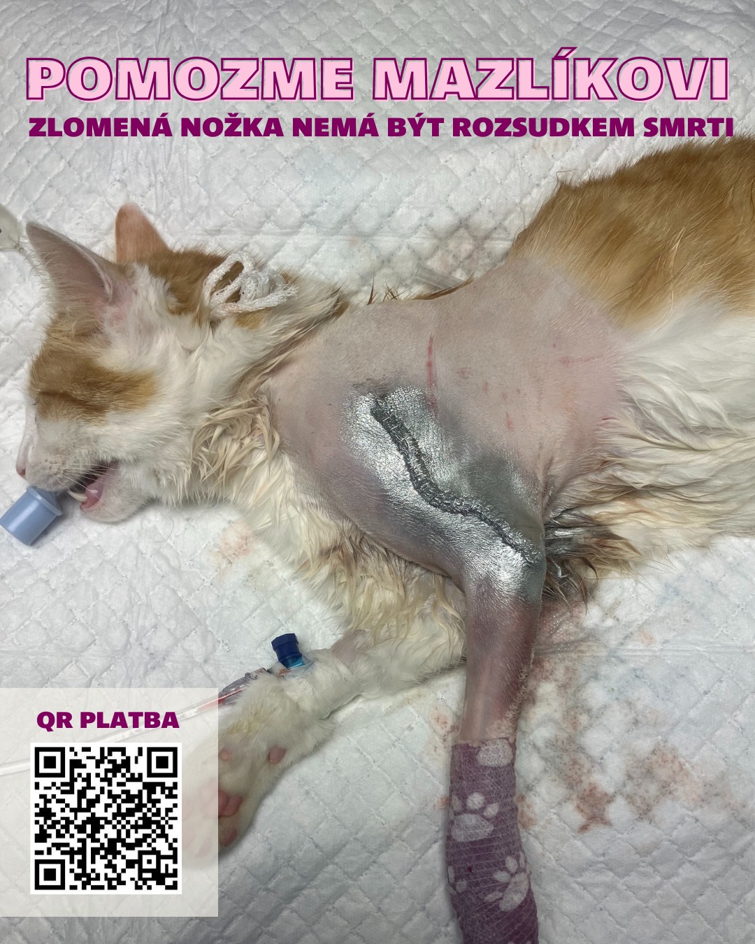 Zlomená noha u kočky totiž není jen „kulhání“. Bez operace by Mazlíka čekaly silné a trvalé bolesti, špatné nebo žádné srůstání kosti, doživotní kulhání, záněty, postupné poškození dalších končetin a páteře. Bolest by ho připravila o chuť k pohybu, ke hře i k životu. U takto mladého kocourka by šlo o celoživotní utrpení nebo dříve či později o neřešitelný stav.