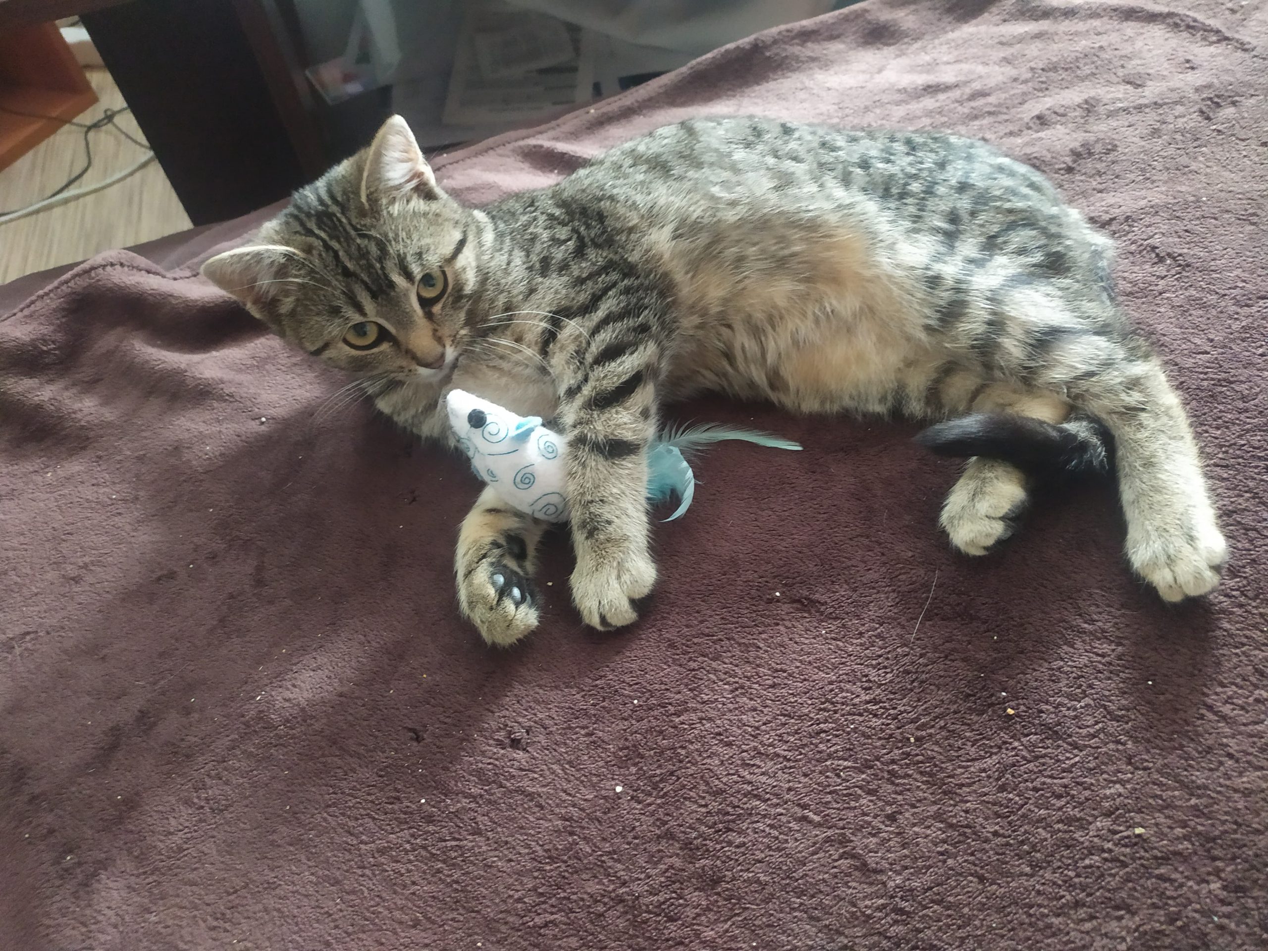 Teuška je úžasná mazlivá kočička, hezky si zvyká, už má prozkoumaný celý byt, který je jejím královstvím. Baští granulky, vařené masíčko a hezky chodí na záchodek. Když nespinká, tak lítá po bytě jak střela a hraje si s hračkama nebo se mazlí s paničkou. ❤️“