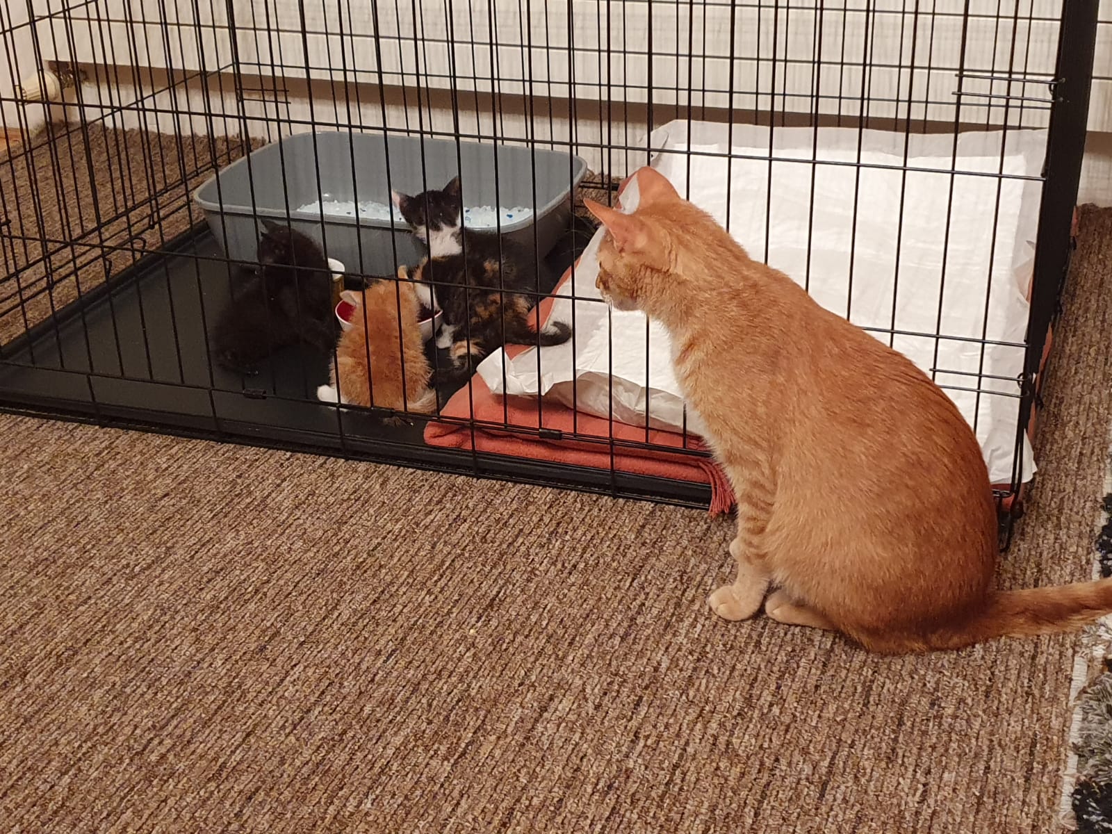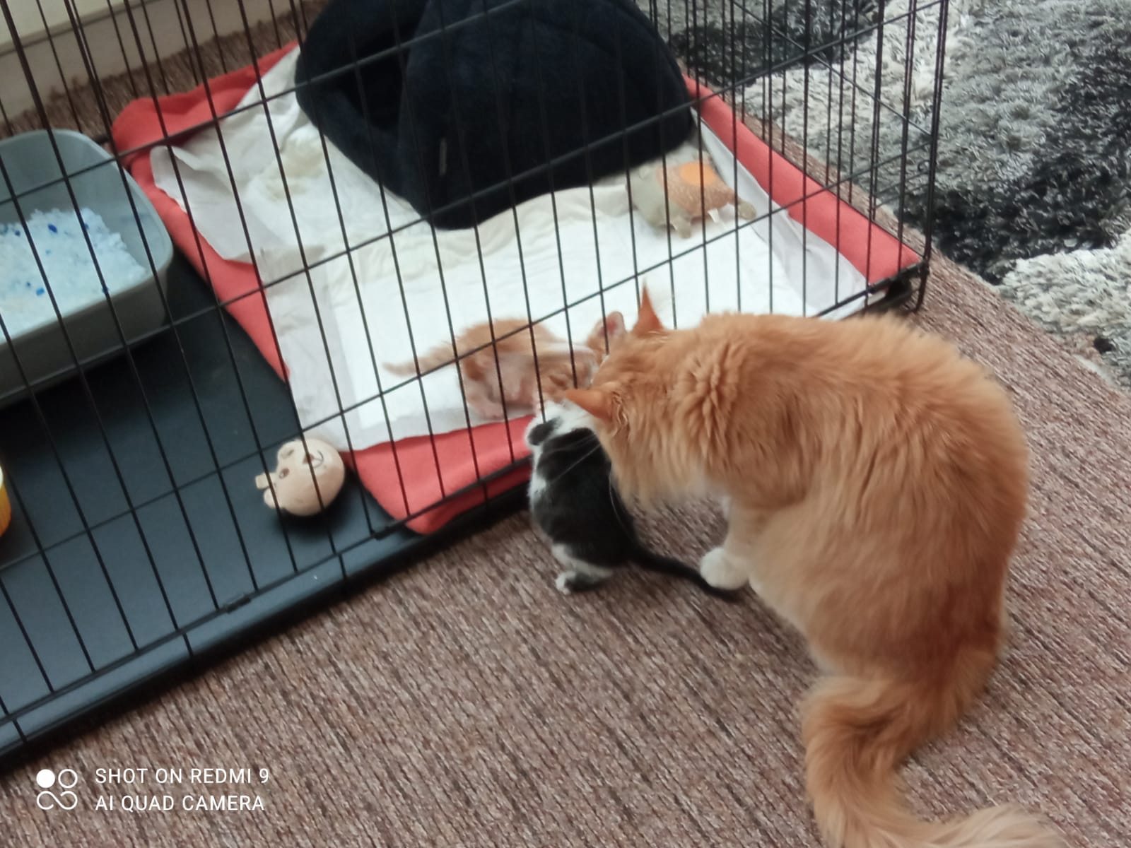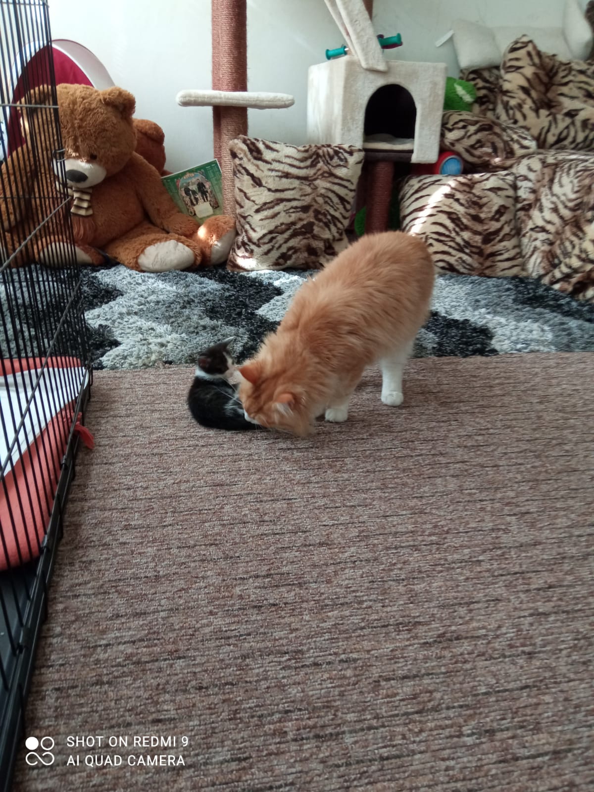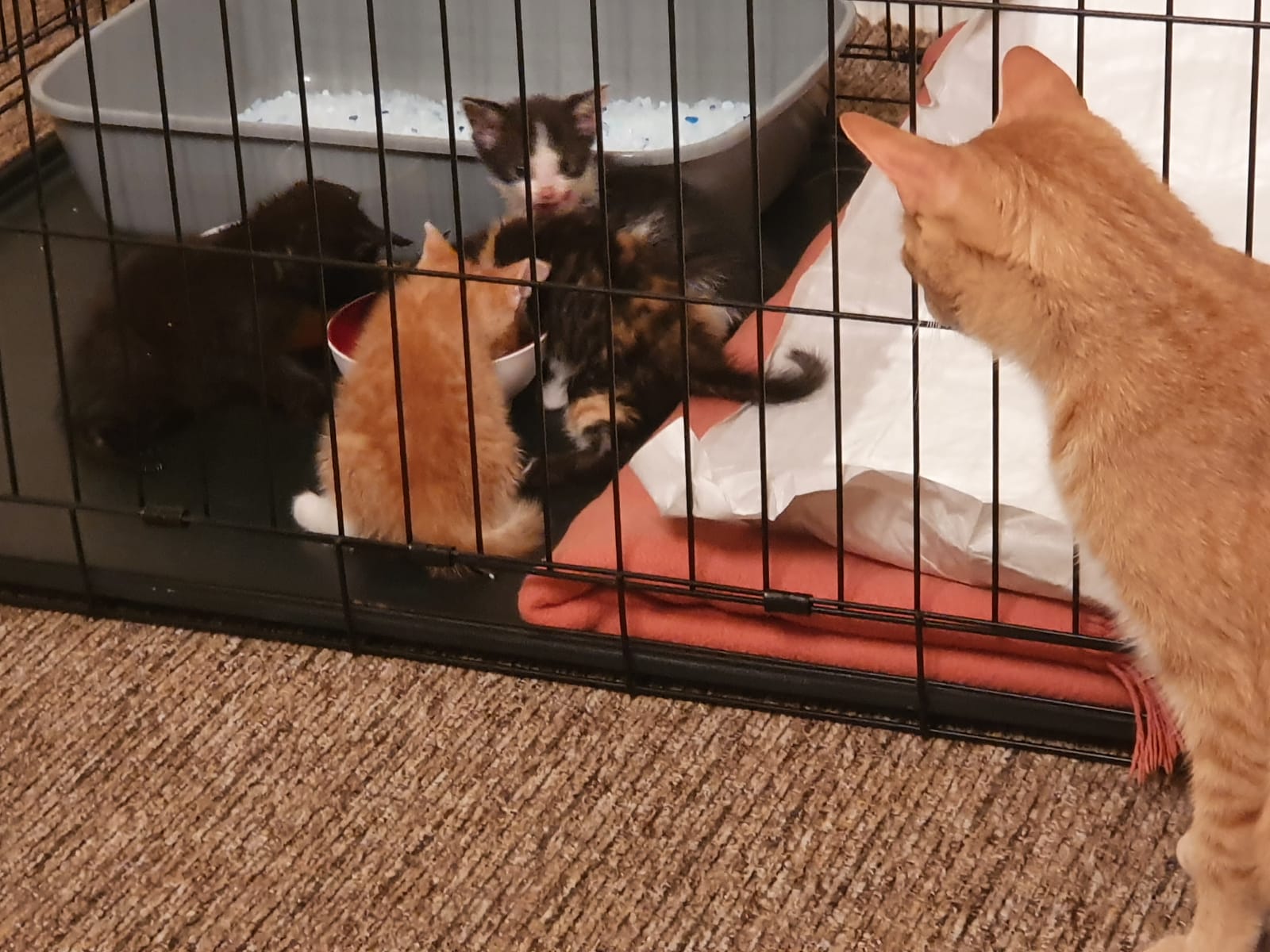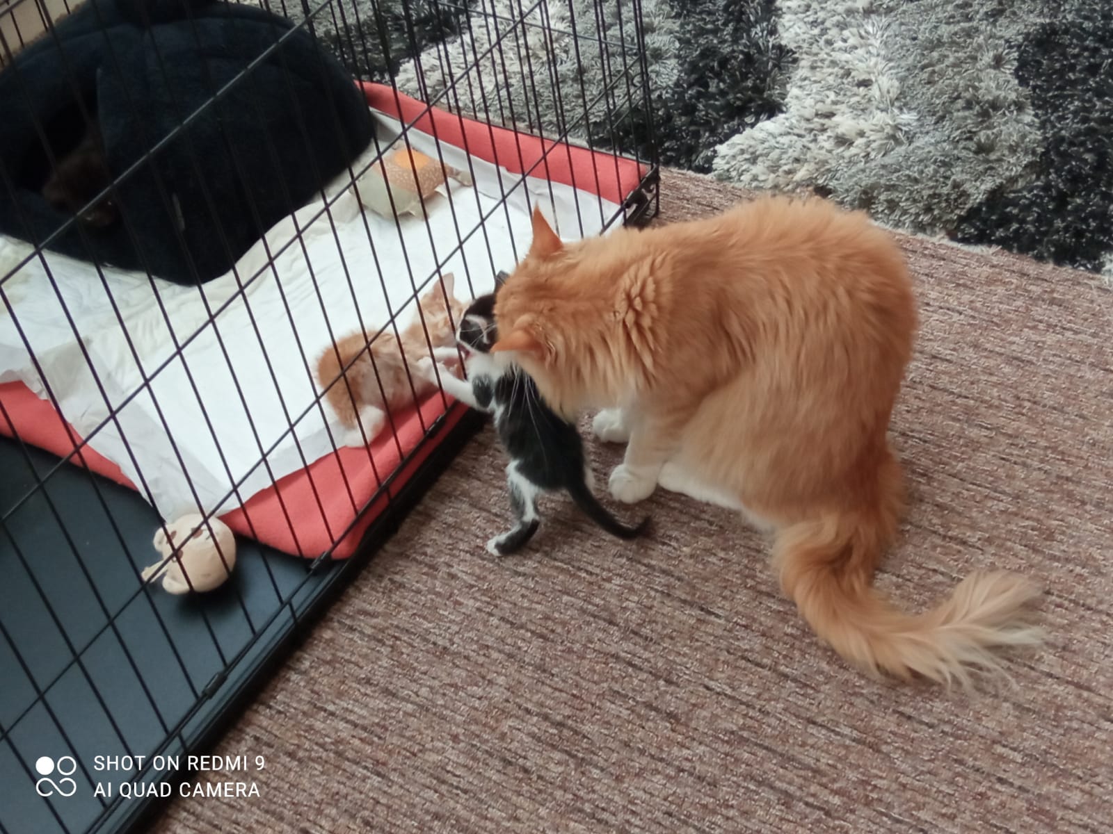 Kocourek Nebojsa si již dva týdny užívá svého nového domova. Stal se 5. kočičkou v rodině a všichni, i s pejskem, se s ním již postupně seznamují: ????