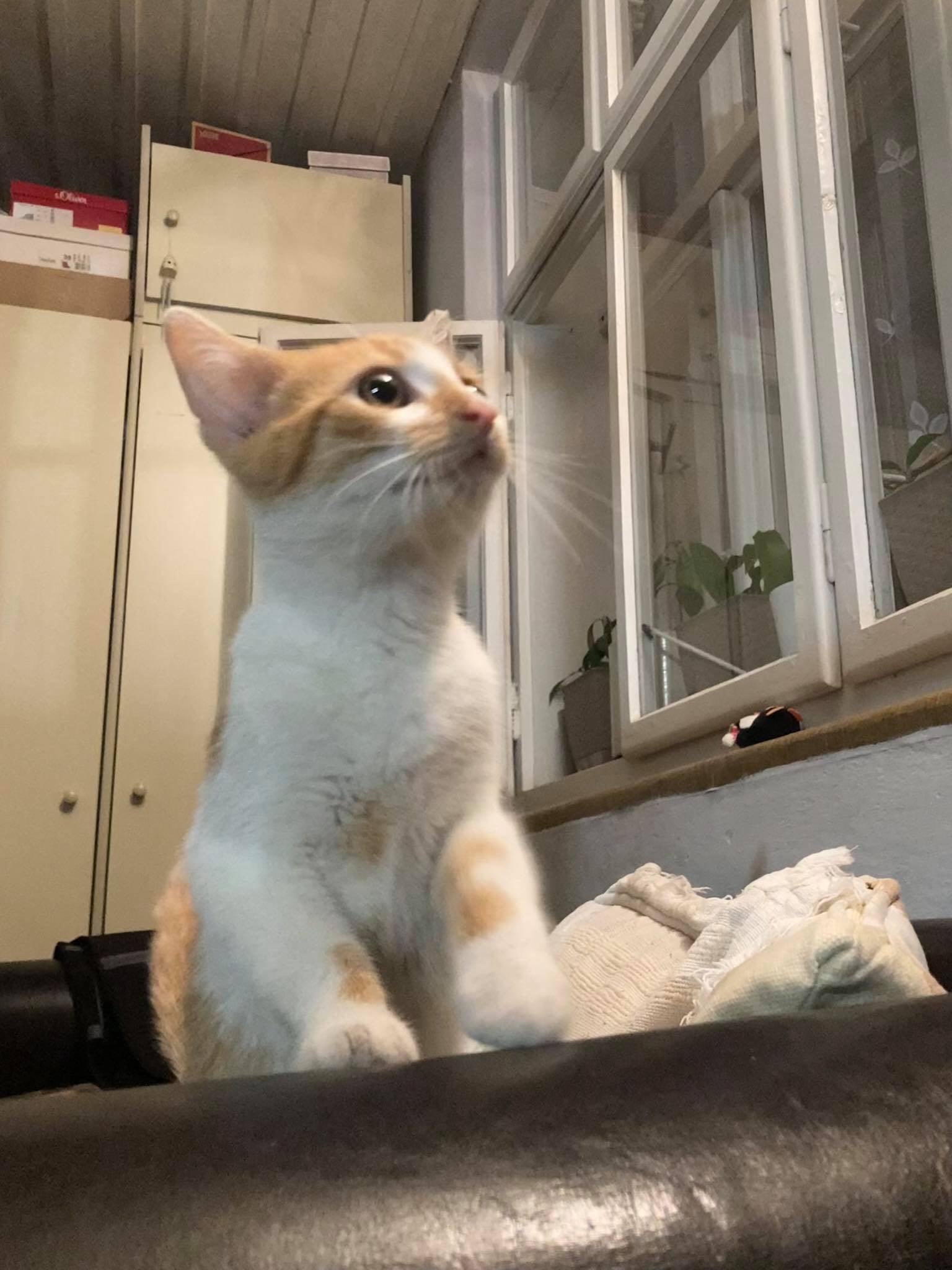 Jsem moc milý, přítulný a hravý. Baví mě hrát si s kočičími kamarády na schovávanou, lumpačit na škrabadlech a když se unavím, tak si lehnu a pozoruji dění okolo sebe. Proto bych chtěl mít v novém domově nějakou kočičí společnost, aby mi nebylo smutno.