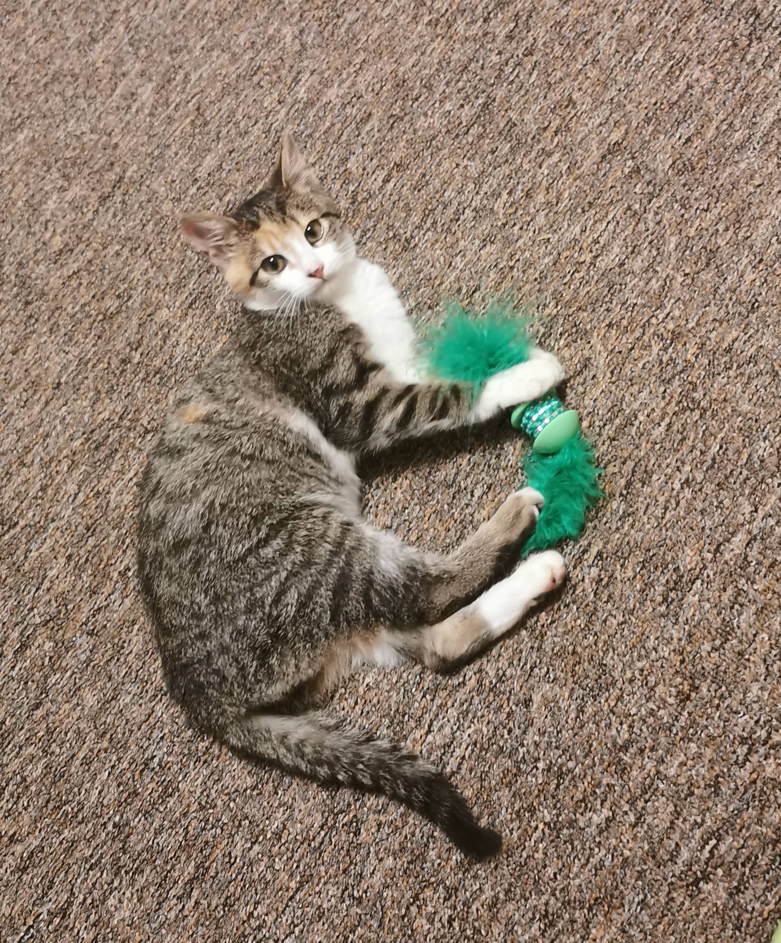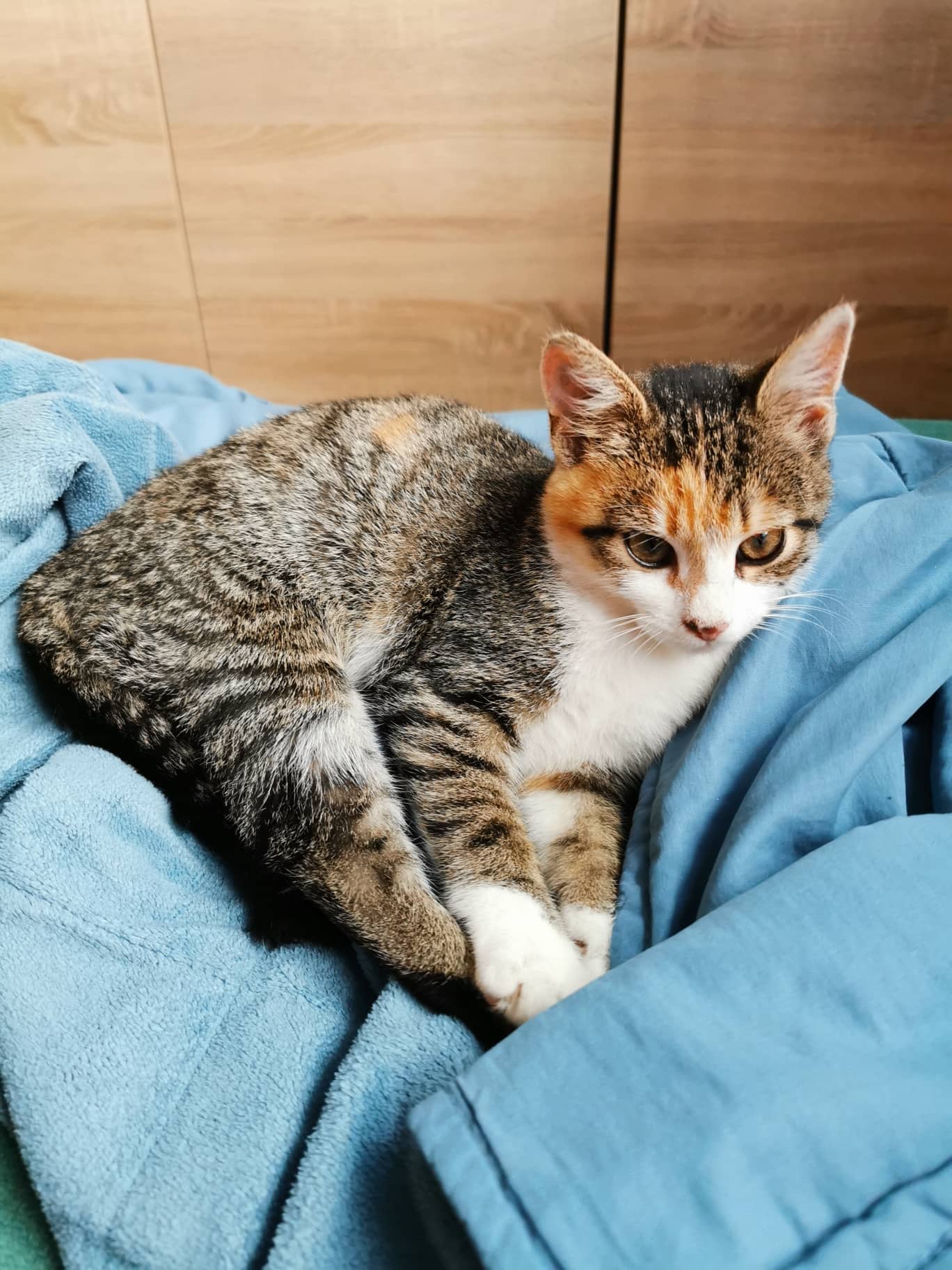 Už si zvykla na nové prostředí, je jí v novém domově přirozeno. Povahově je velice zvědavá, energetická, aktivní, ze začátku lítala po celém prostoru. Jakmile si prozkoumala byt, našla si svá oblíbená místa, kde ráda leží, schovává se, hraje si a odpočívá.