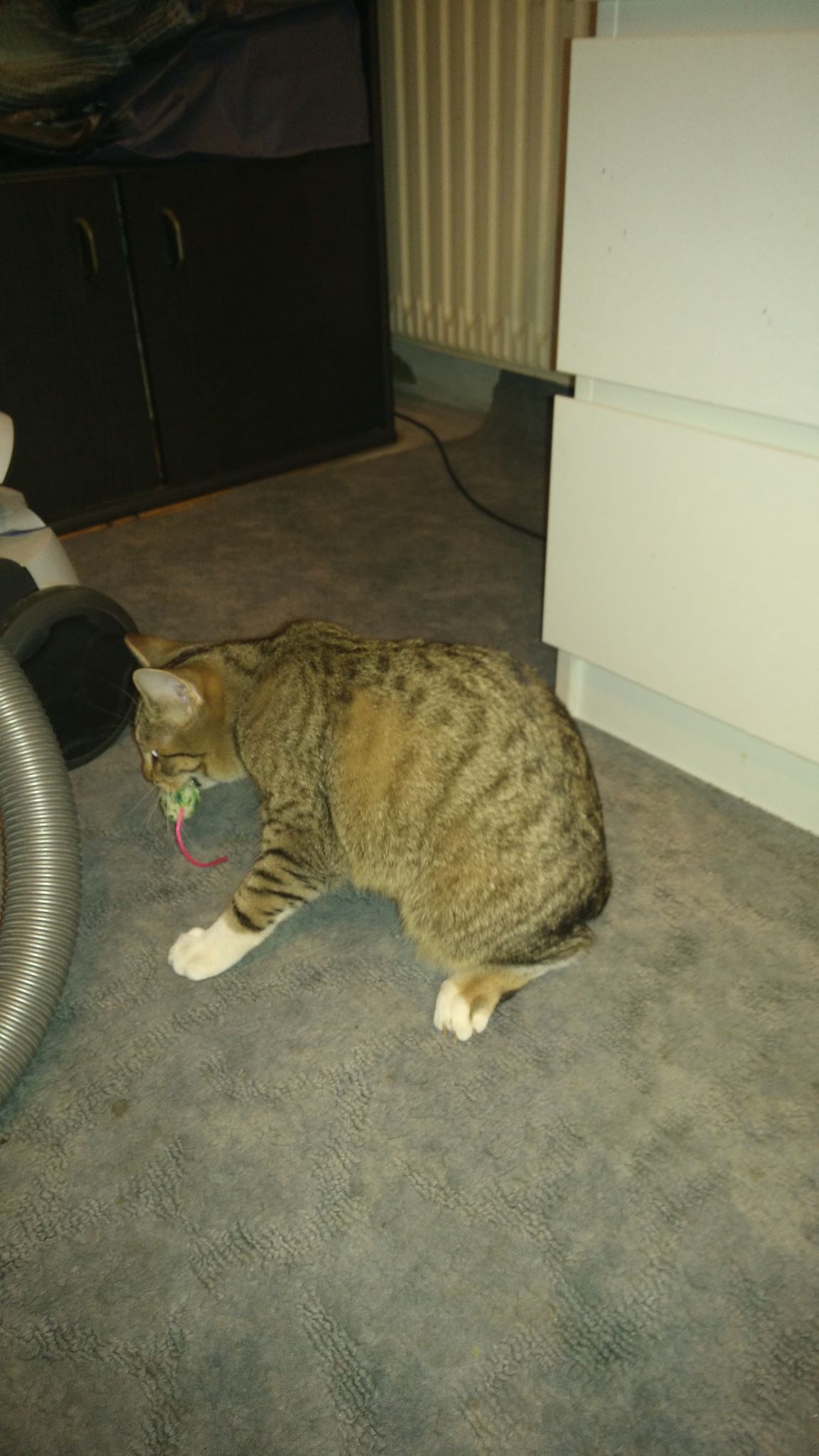 Mám krásně zbarvený kožíšek. Jsem mourinek s bílým bryndáčkem a na předních nožkách mám bílé ponožky ???? a na zadních nožkách bílé podkolenky. ????