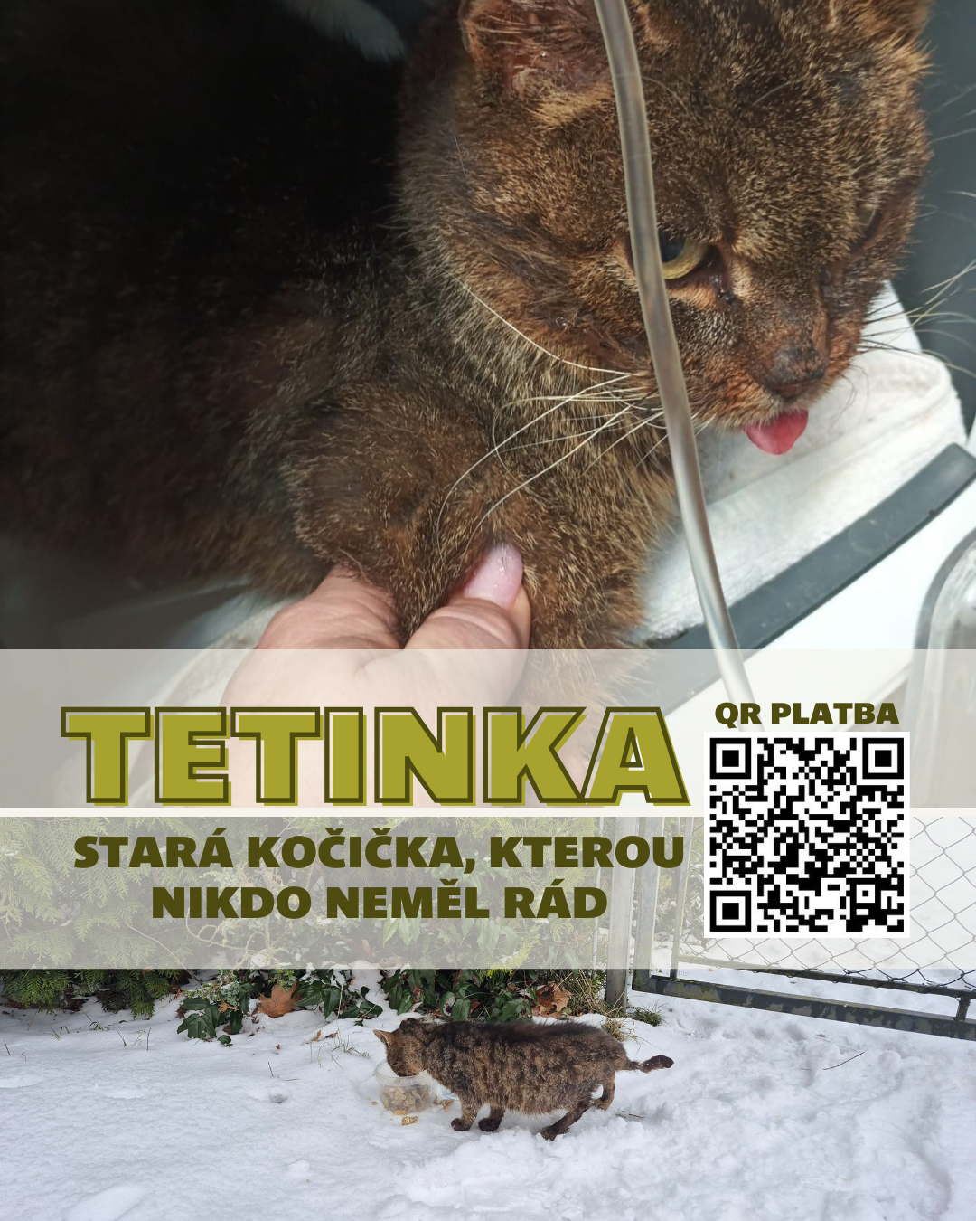 Prosíme vás, pomozte nám Tetince dopřát důstojnou péči, úlevu od bolesti a šanci dožít v teple a bezpečí. 🙏🏻